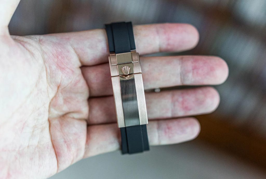 Rolex offered Oysterflex in a series of fixed lengths identified by letters (EE, EF, FG, etc.). Buyers had to guess which combination of two halves would approximate their wrist size. The problem? The gap between sizes is roughly 7-8 mm. On a solid-link Oyster bracelet, you can swap in or out a single 5 mm link and then use Easylink for the final tweak; on Oysterflex, your only margin after purchase is Easylink’s 5 mm. As I discovered with a yellow gold Daytona ref. 116518LN (the coveted “Paul Newman” dial variant), one size sagged, the next constricted circulation, and no amount of Easylink fiddling could bridge the gap. Within days, the dream Daytona was boxed up and dispatched to a reseller.
